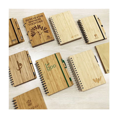 環境にやさしいリサイクル竹カバーノートブック印刷レーザー刻印パーソナライズされたメモウッドジャーナルスパイラルノートブックギフト